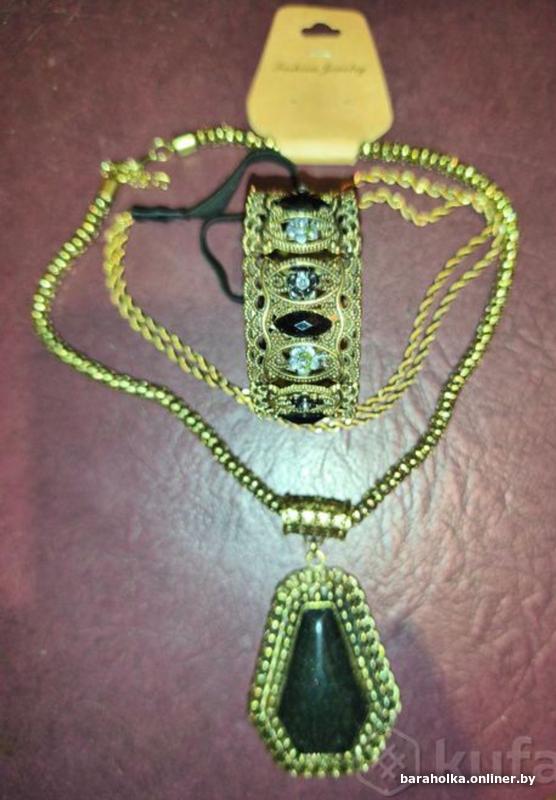 Ювелирный набор украшений, комплект из 3 единиц: кулон, браслет и цепочка под ворот. Цвет золотистый. Обмен на стройматериалы или Пентиум 5 и выше с мамкой в системник. Возможна доплата.