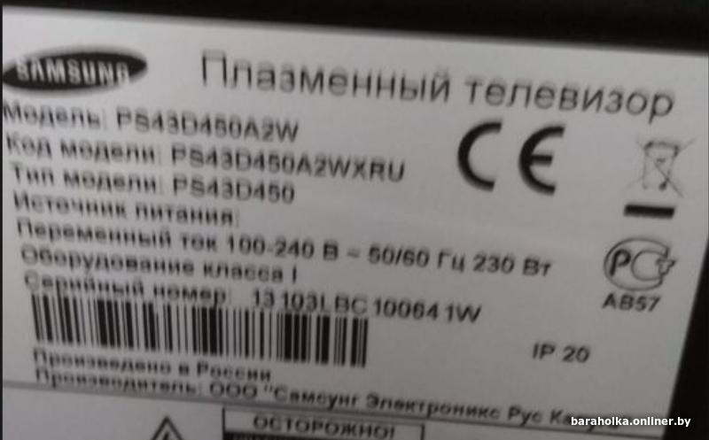• Плазменный телевизор Samsung PS43D450. На экране несколько черных полос.Витебск