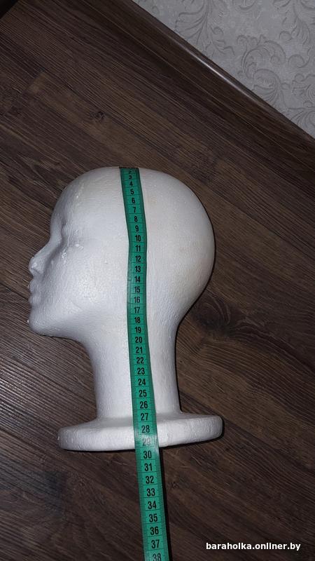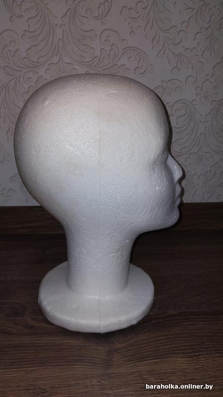 Болванка, манекен головы. Состояние хорошее. Из плотного пенопласта. Высота ок. 30 см, обхват ок. 53 см.
