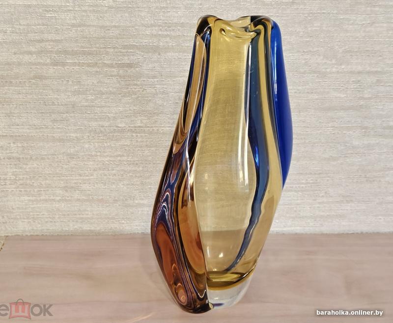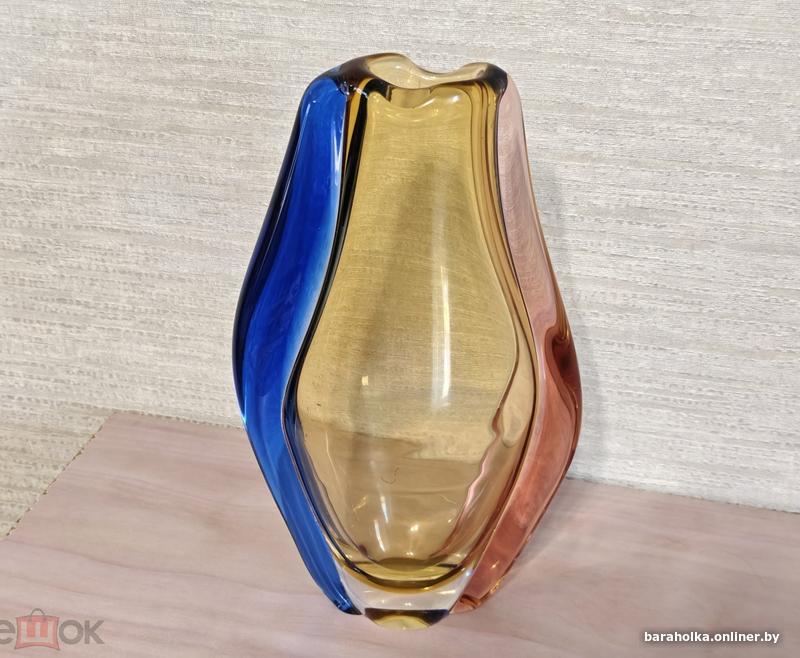Ваза плоская, цветное стекло, серии Богемия, Чехия, период СССР (его распада), практически новая. Оригинальный дизайн, высота 24 см, наибольший размер ширины 14 см (по центру), размер горлышка 2,5х3 см, вес 1300 г. Украсит ваш интерьер при праздничных мероприятиях. Продаю в связи с ненадобностью реальному покупателю. Не торгуюсь и не меняю