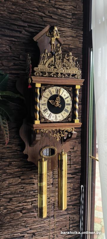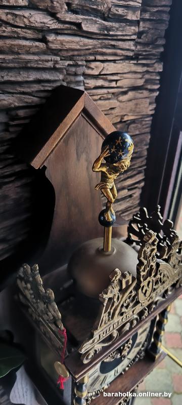 Оригинальные голландские часы, изготовленные в знаменитом стиле «ZAANSE CLOCK» в 70-х годах XX века. Дубовый корпус украшен бронзовыми декоративными элементами в виде витых колонн, изображений львов и, конечно, знаменитого атланта, держащего на своих плМолодечно