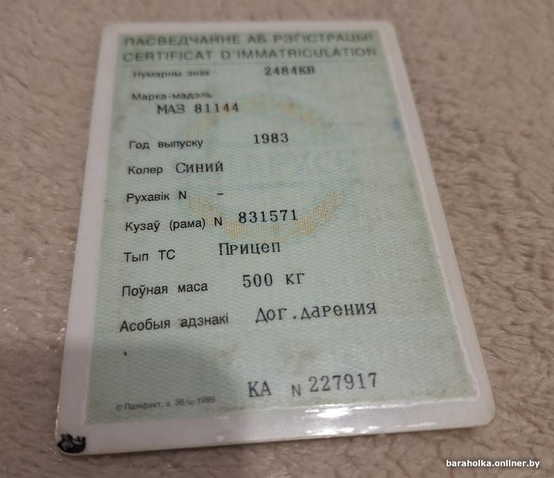 • Продам прицеп к легковому автомобилю МАЗ 81144 1983 года. в идеальном состоянии. Стоял в гараже. Недавно пройден техосмотр.Минск