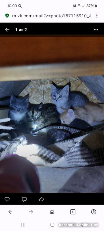 Минск! Котята срочно ищут дом. Возраст примерно 1,5 месяца. Очень красивые, выбор есть:трехшерстный , рыжий, светло-серебристый,дымчатый и темно-серый с полосками(в кадр не попал) . Малыши живут в холодном домике в кустах,ждут своего человека. Вокруг много опасоостей:собаки, люди, взрослые коты. Им срочно нужен уютный уголок. Я окажу помощь в доставке ,можем привезти в другой город.