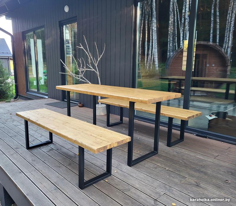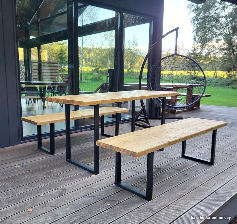 НОВЫЙ НАБОР МЕБЕЛИ В СТИЛЕ ЛОФТ. НЕ ИСПОЛЬЗОВАЛСЯ. ОТЛИЧНО ПОДОЙДЁТ ДЛЯ ДАЧИ, ТЕРРАСЫ, ВЕРАНДЫ, БЕСЕДКИ, КУХНИ ИЛИ ЛОДЖИИ. ПРОЧНЫЙ И ДОЛГОВЕЧНЫЙ КАРКАС ВЫПОЛНЕН ИЗ СТАЛИ, ПОКРАШЕН В МАТОВЫЙ ЧЁРНЫЙ ЦВЕТ. НА НОЖКИ ПРИКЛЕЕНЫ СПЕЦИАЛЬНЫЕ ФЕТРОВЫЕ НАКЛАДКИ ДЛЯ МЕБЕЛИ. СТОЛЕШНИЦА И СИДЕНЬЯ ИЗ НАТУРАЛЬНОГО ДЕРЕВА (СОСНА). ДЕРЕВЯННЫЕ ЭЛЕМЕНТЫ ПОКРЫТЫ КАЧЕСТВЕННЫМ ИТАЛЬЯНСКИМ МАСЛОМ ДЛЯ ДРЕВЕСИНЫ. НАБОР СОСТОИТ ИЗ СТОЛА И 2 СКАМЕЕК. РАЗМЕРЫ: СТОЛ – ДЛИНА 160 СМ, ШИРИНА 61 СМ, ВЫСОТА 75 СМ, ТОЛЩИНА СТОЛЕШНИЦЫ 40 ММ. СКАМЕЙКИ – ДЛИНА 160 СМ, ШИРИНА 40 СМ, ВЫСОТА 45 СМ, ТОЛЩИНА СИДЕНЬЯ 40 ММ.