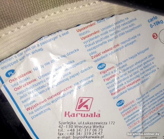 Детское автомобильное кресло KARWALA 0-10 кг ПОЛЬША