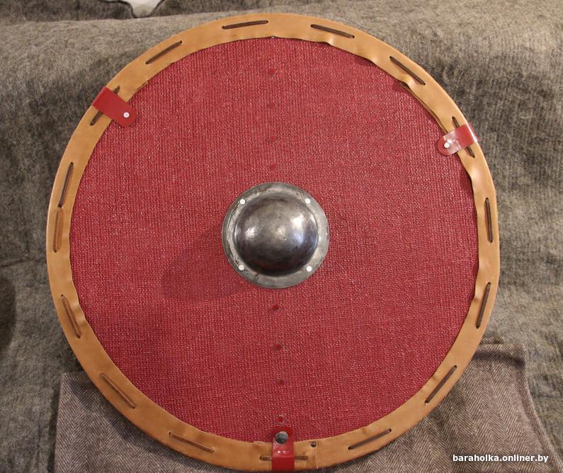 -щит скандинавский, окрас - красная охра; 75 см. досчатый (толщина 16 мм) с кольцами и ремнём.