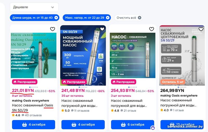 Насос простоял в скважине на даче 1 неделю, а работал 3 дня, т. к. пришлось покупать другой насос из-за автоматики на гидроаккумуляторе.