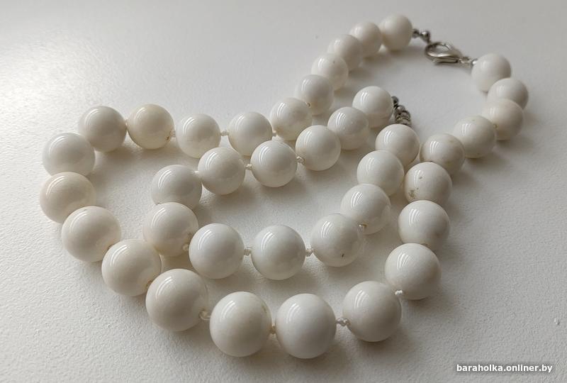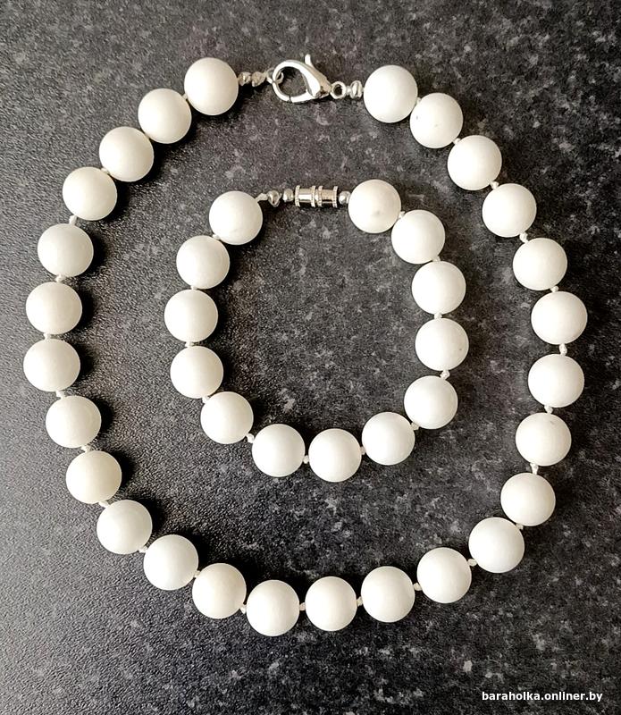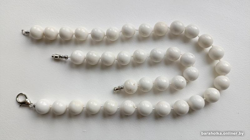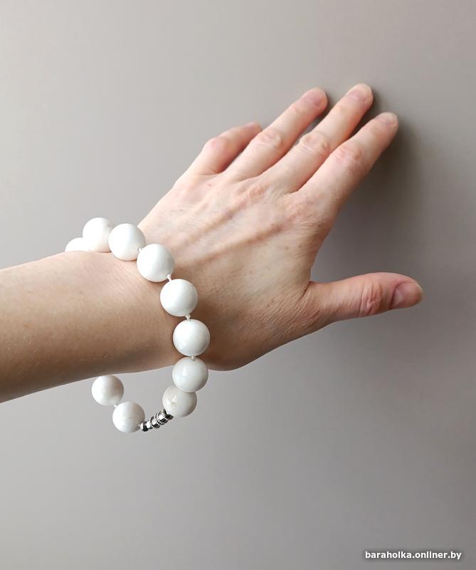 Бусы-чокер и браслет из натурального камня - белого агата.