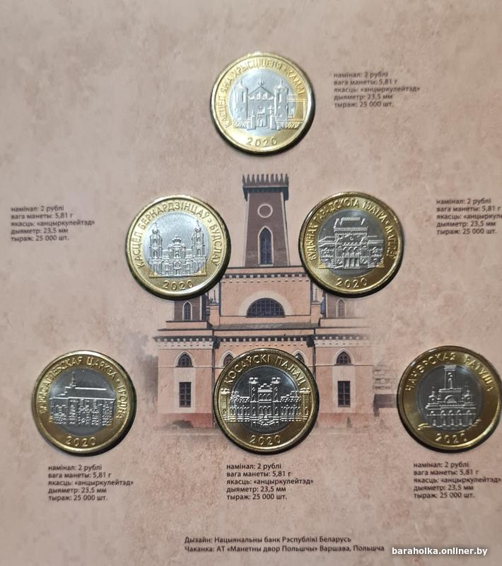 Беларусь. Комплект памятных монет 6 штук по 2 рубля. Серия "Архитэктурная спадчына Беларусі" 2020 года. Архитектурное наследие Беларуси 2020 .
