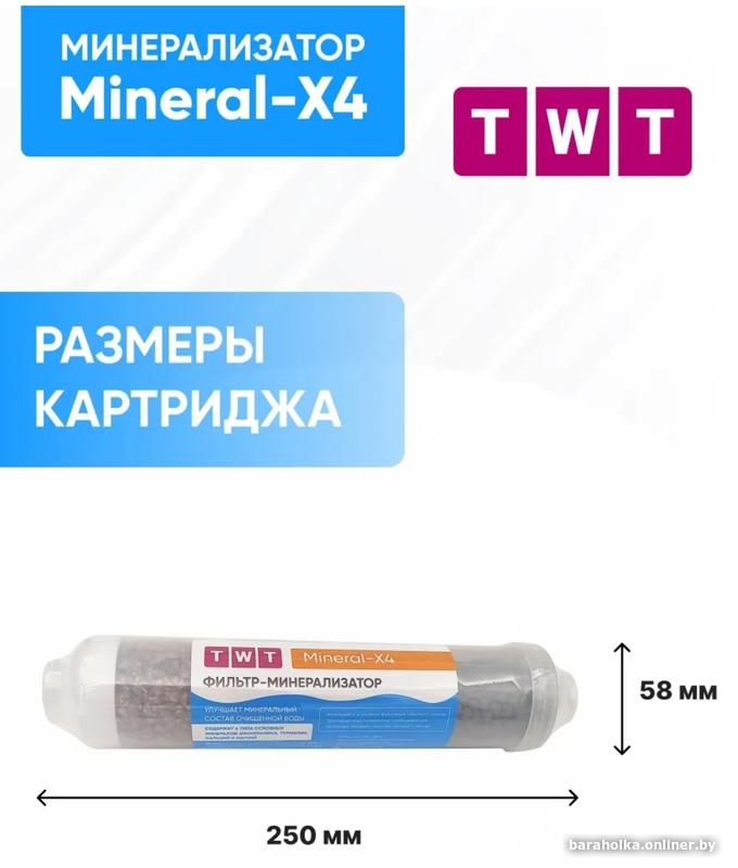 Картридж минерализатор TWT Mineral x4 для систем обратного осмоса с резьбой 1/4 без фитингов, предназначен для очистки и минерализации воды.