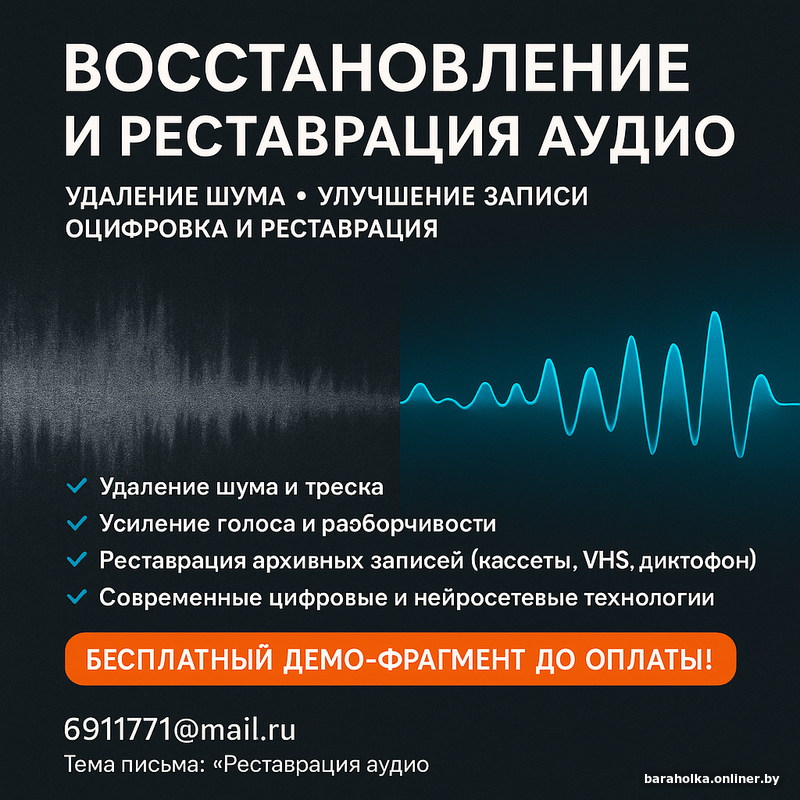 Вам нужно восстановить старую или повреждённую аудиозапись? Специалист с многолетним опытом предлагает профессиональную реставрацию аудио любой сложности!