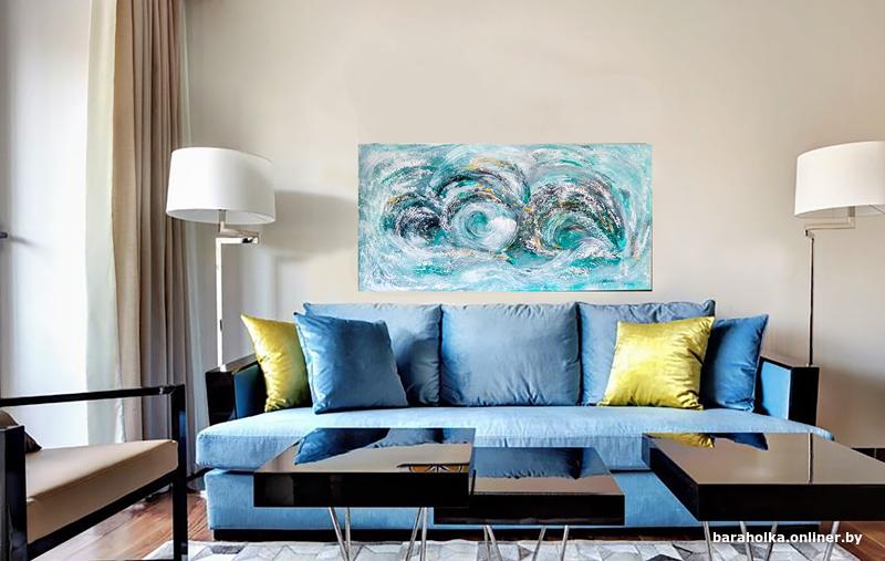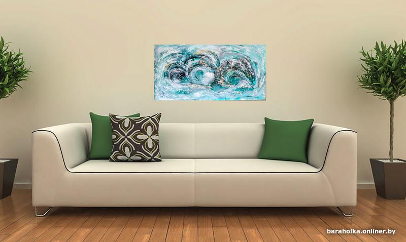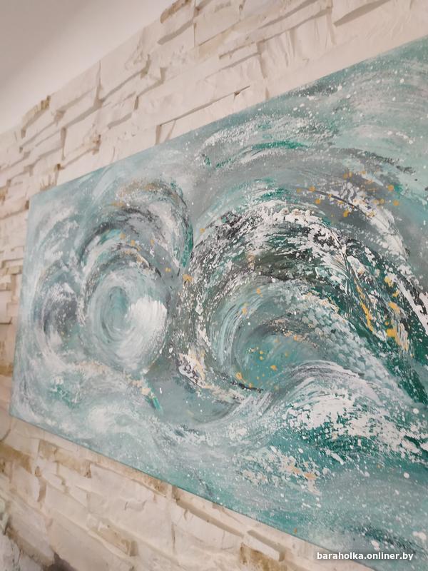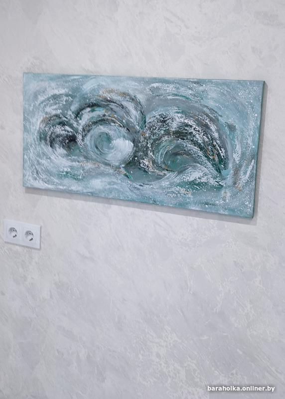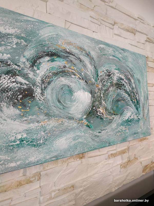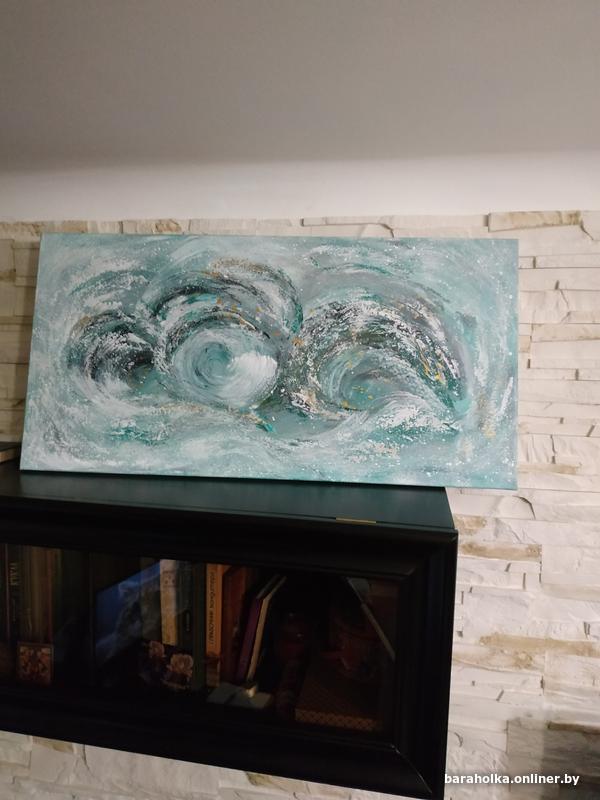 Картина "Волна" абстракция, холст хлопок 100% на деревянном подрамнике, выполнена художественными акриловыми красками, размер 40х80х2. Новая. Для покупателей, не проживающих в Минске, пересылка через "Белпочту" наложенным платежом.