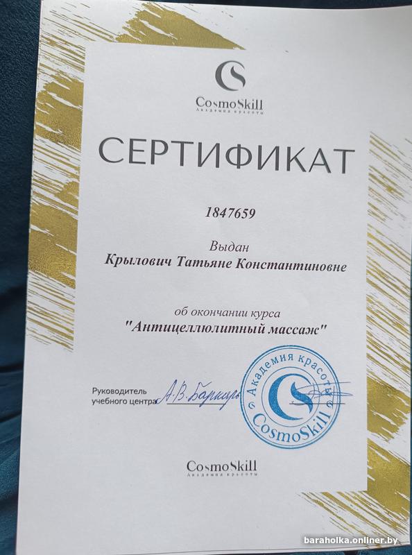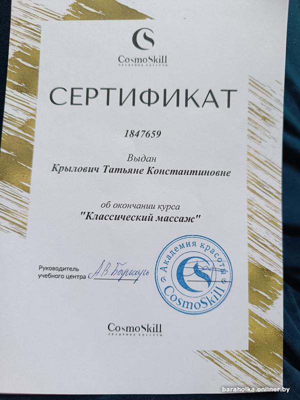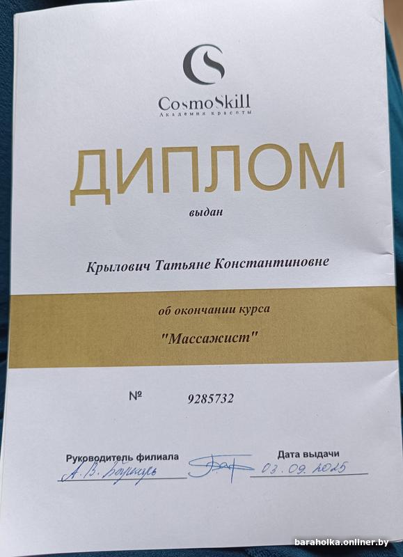 Я сертифицированный массажист с опытом работы в классическом, миофасциальном, антицеллюлитном и лимфодренажном массаже, стремящийся к постоянному профессиональному развитию. Обучение в академии красоты 'Космоскилл' позволило овладеть техниками, которые помогают создавать комфортную атмосферу и обеспечивать качественный сервис для клиентов.