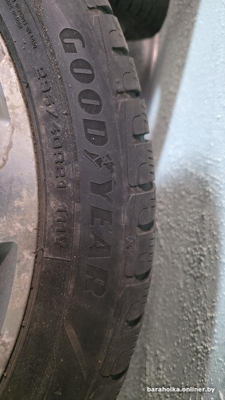 Диски с шинами 3 шт. Одна шина с "булкой", один (четвёртый) диск надо реставрировать (восьмёрка). На лицевой части дисков есть коррозия лакокрасочного покрытия. Резина 295/40 R21.