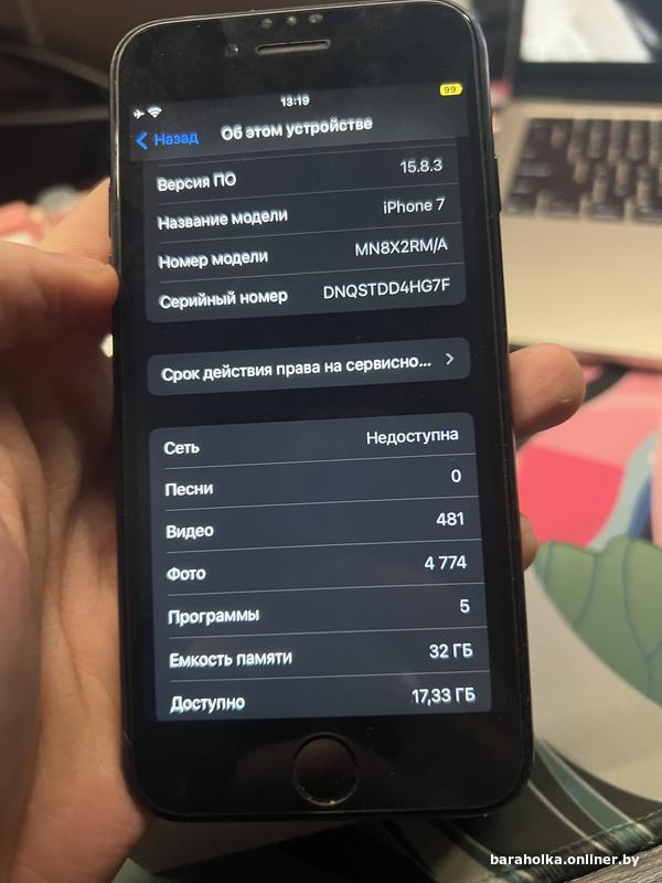 • iPhone 7 32гб, 93% акб меняный, rootless jailbreak через dopamine.Минск