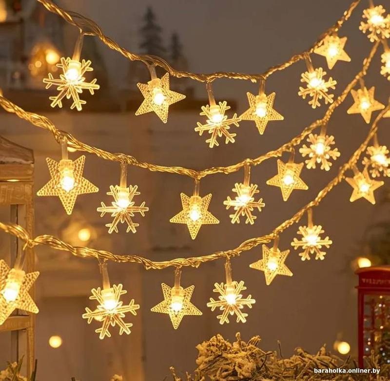Новые гирлянды звезды и снежинки, на батарейках, длина 3 метра. В наличии 50 штук. Поштучно: 15 руб\шт. 5-10 штук: 13 руб\шт, 10-20 штук - 11 руб\шт. Более 20 штук - 9 руб\шт.