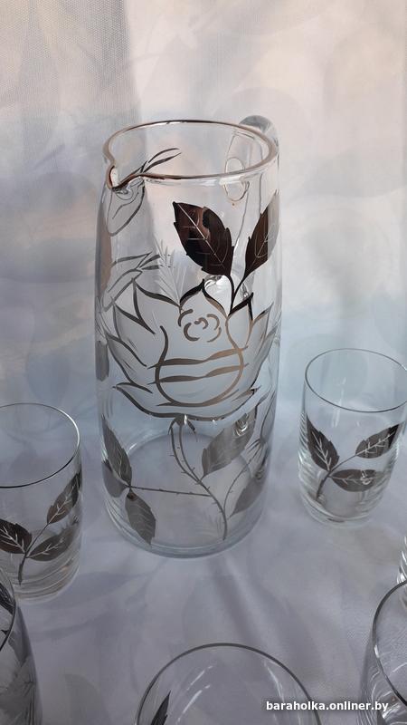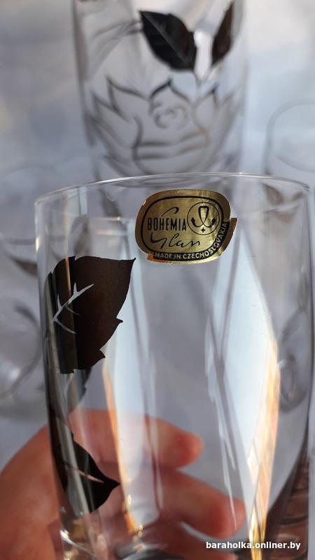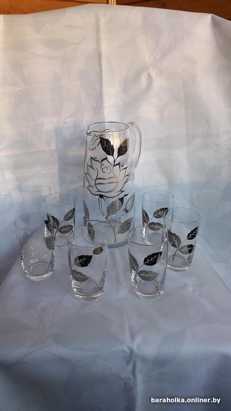 Новый набор посуды кувшин + шесть стаканов чешское стекло (хрусталь) Богемия Чехословакия. Середина прошлого века. Ни разу не использовался, но этикетки за давностью времени не везде сохранились.