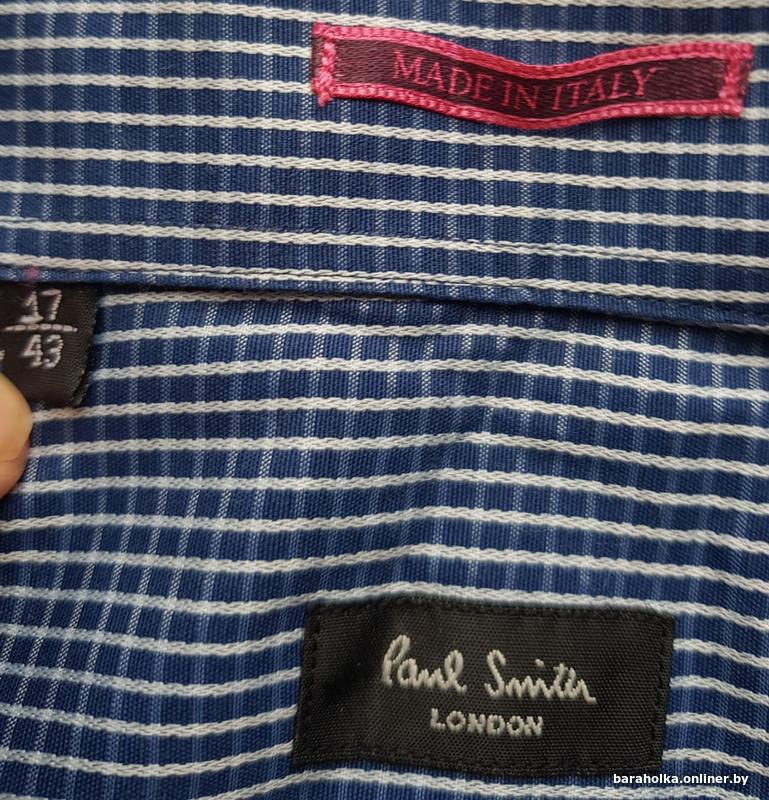 Этикетки правильные (черный лейбл "Paul Smith London" с embroidered подписью, care label на англ/фр/ит/нем, 5% shrinkage warning на нескольких языках).