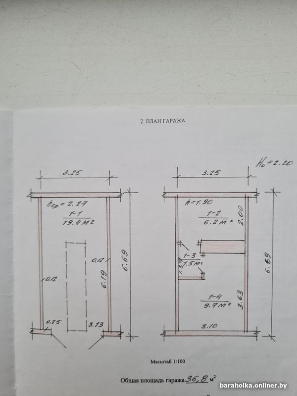 Площадь гаража и подвала 3.13х6.19=19.4м2