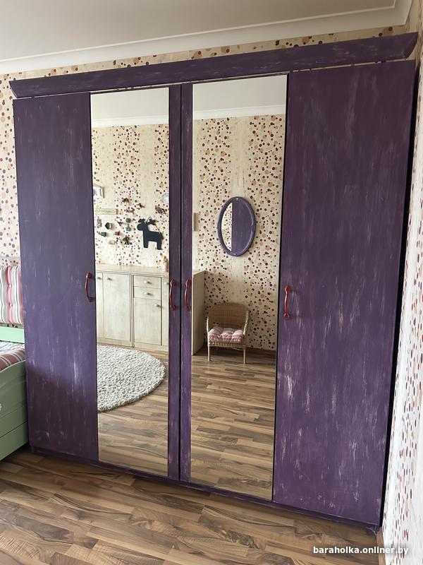 Шкаф распашной большой. Декорирован вручную. Размер 2000х2080(2017)х600. Крашеный вручную, МДФ, зеркала.