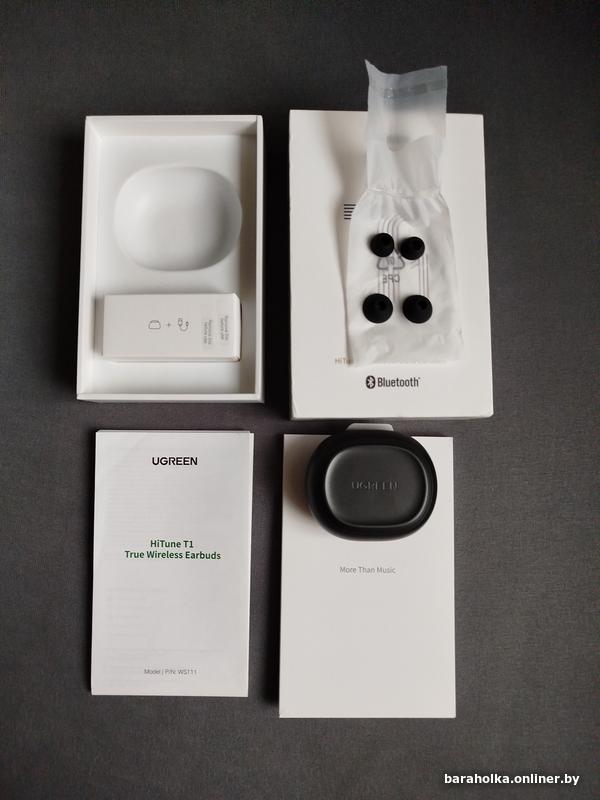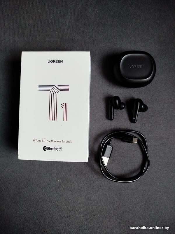 Беспроводные bluetooth наушники Ugreen HiTune T1. Отличное состояние, очень мало б/у, хороший звук, микрофон с активным шумоподавлением, быстрая зарядка, долго держат заряд, несколько режимов эквалайзера, амбушюры под любой размер уха.
