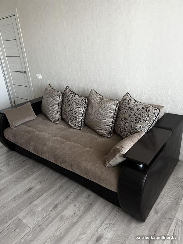 Продам диван и кресло ( комплект) с подушками в хорошем состоянии. Размеры дивана:110х238см. Размер спального места: 198х158см. Самовывоз ( Ленинский район). Звоните +375445788670 Ольга.Минск