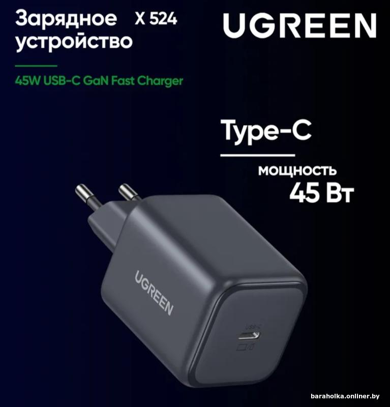 Зарядное устройство Ugreen X524 (технология GaN Infinity, мощность 45W)