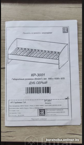 Кровать: ЛДСП 16 мм, цвет - дуб серый, размер (ВхДхГ) мм -