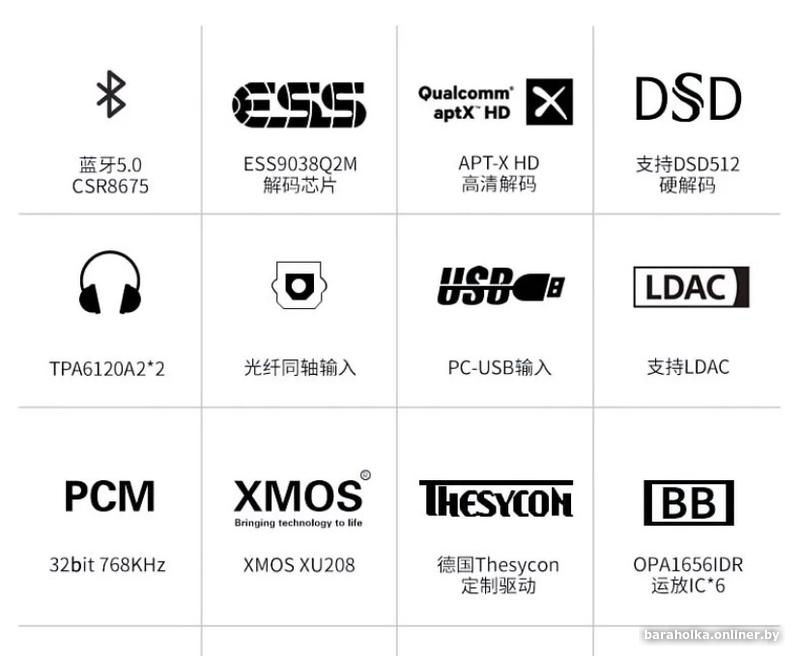 Бескомпромиссный Hi-End аппарат на аудиофильском аудио-ЦАП ESS9038Q2M (как во много раз более дорогих Hi-End аппаратах более премиальных аудиобрендов), поддерживающий PCM до 32 бит/768 кГц и DSD до DSD512.