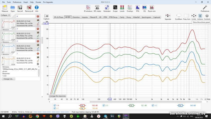 На графиках показана АЧХ измеренная на оси методом ground plane, на разных уровнях громкости.