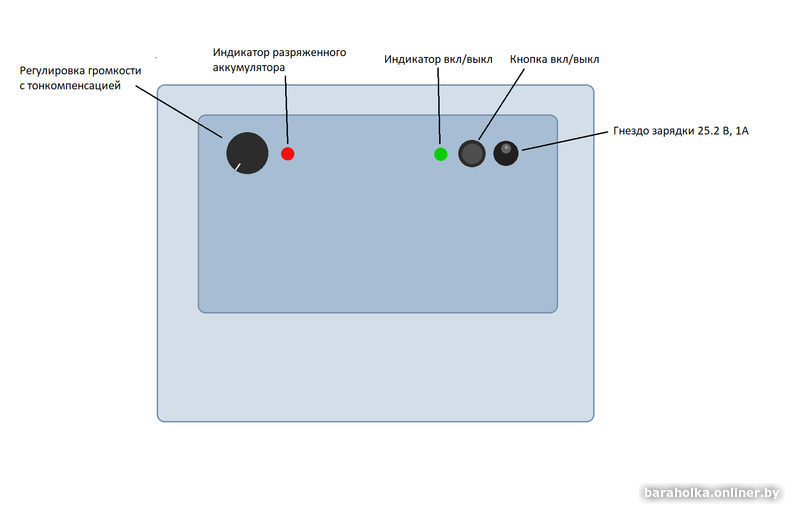 Время работы на максимальной громкости около 3.5-4 часов. Регулятор громкости с функцией тон компенсации. Вес в районе 8 кг.
