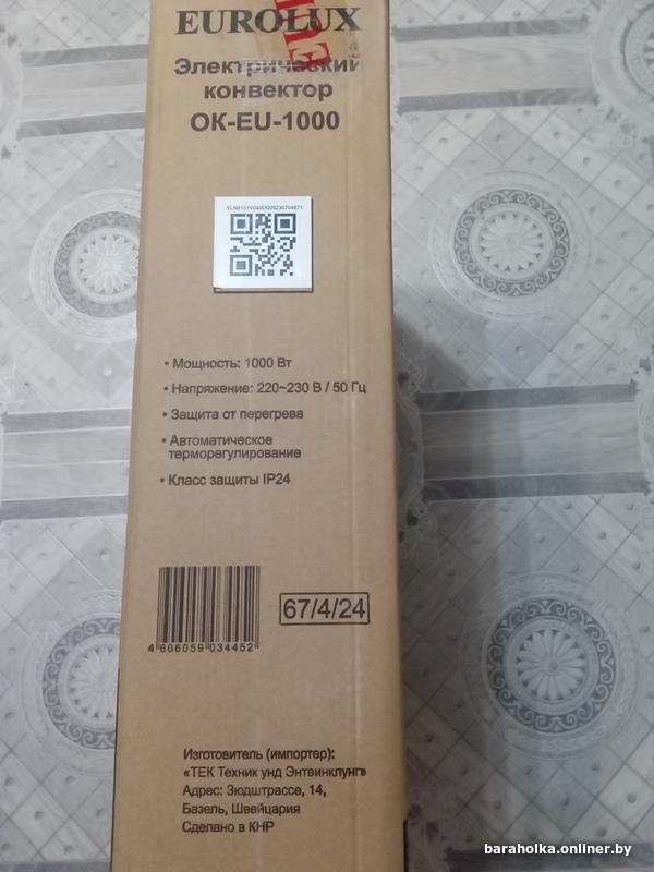 Продаю конвектор EUROLUX OK-EU 1000Вт, современный Х-образный монолитный нагревательный элемент, быстрый экономный нагрев без запаха и шума, влагозащитный корпус степень защиты IP-24, защита от перегрева опрокидывания автоотключение, термостат 2режима нагрева, новый в упаковке, гарантия, есть на 1500Вт телефон 8 025 7868085