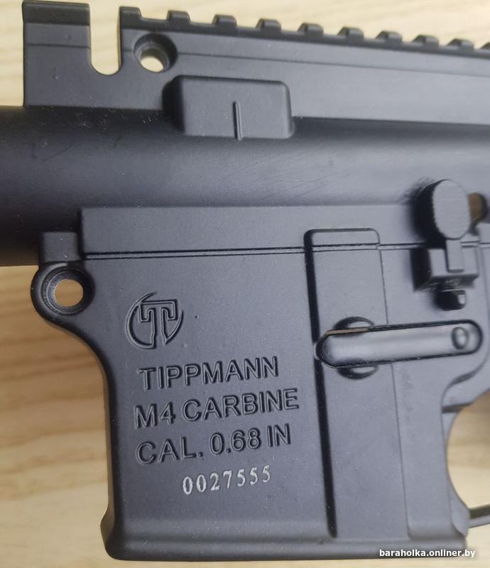 Маркировки ("TIPPMANN SPORTS", "M4 CARBINE CAL. 0.688 IN", логотип "TP" в круге, серийный номер) соответствуют genuine продукту.