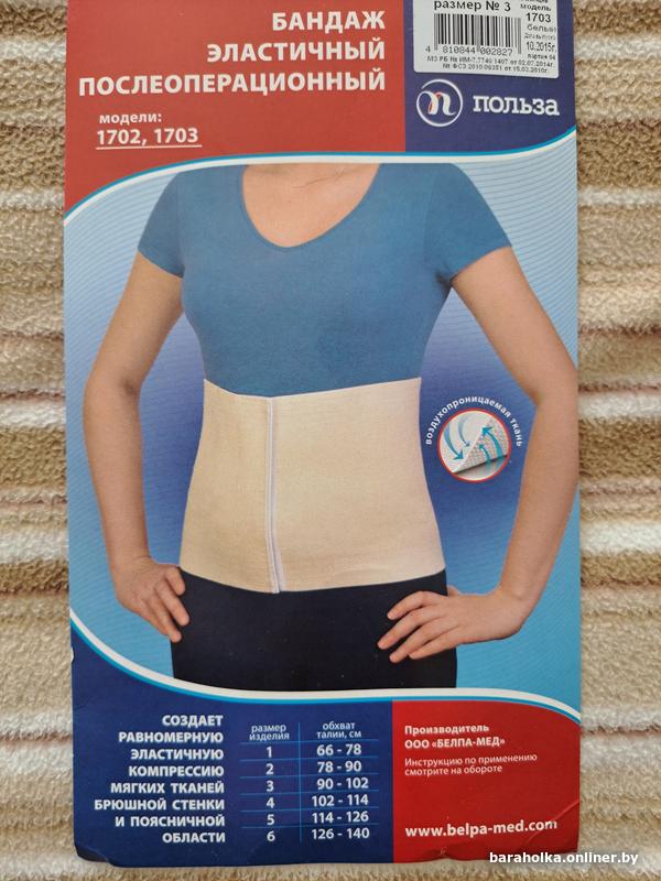 • Бандаж эластичный послеоперационный. Размер №3. Обхват талии 90-102. Новый, в пользовании не был.Минск