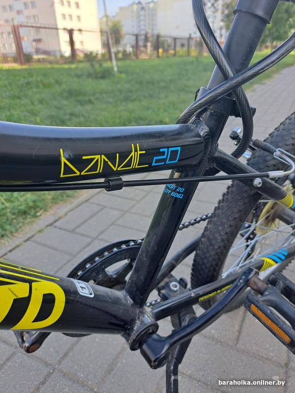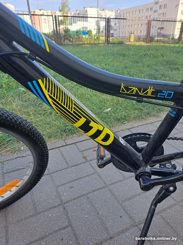 Подростковый горный велосипед LTD Bandit 20. Трансмиссия 6-ти скоростная, рама и вилка из алюминиевого сплава. Передний и задний тормоза с ручным приводом. Все исправно.