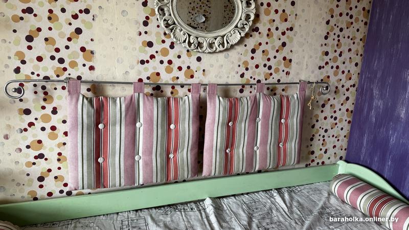 Подушки 60x50 (-3,5) cm, карниз - 160, валики - 65 х12 см