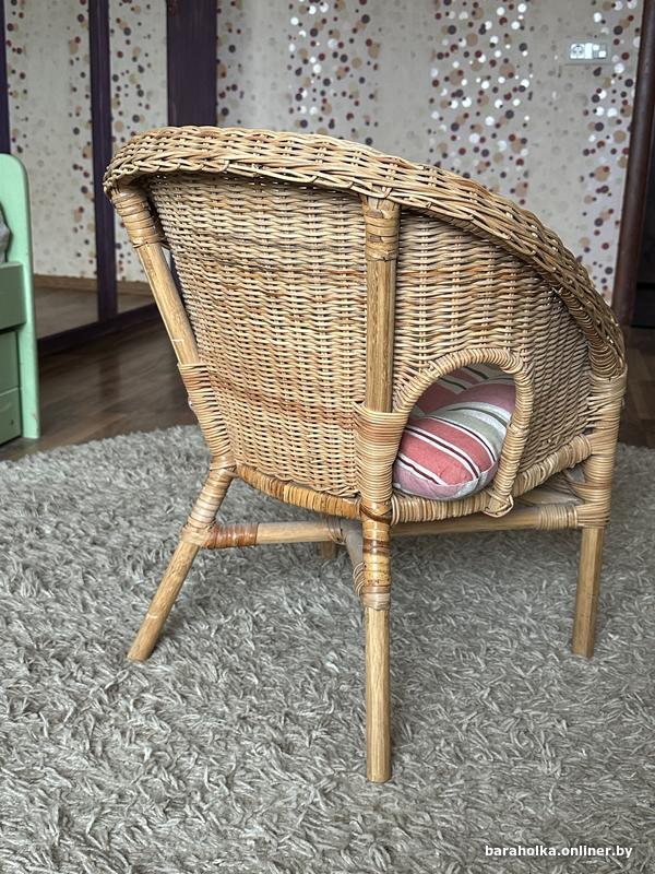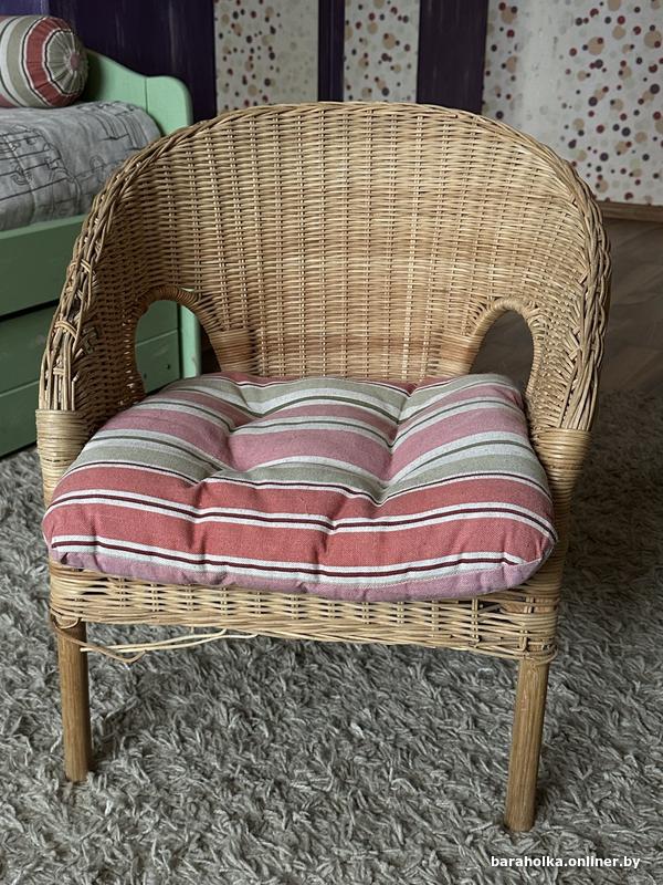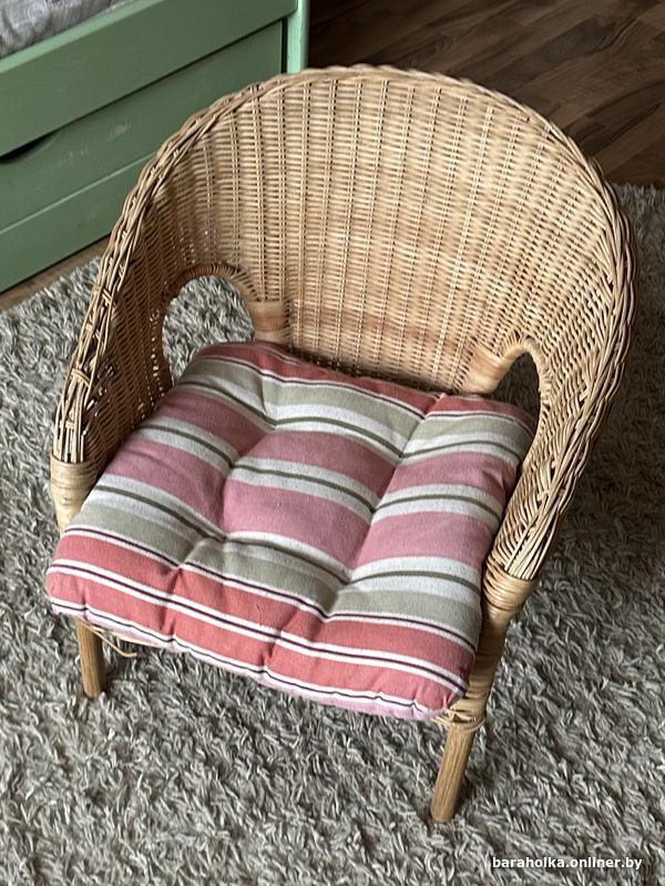 IKEA детское кресло из ротанга б/у с подушкой из хлопка, есть изъяны