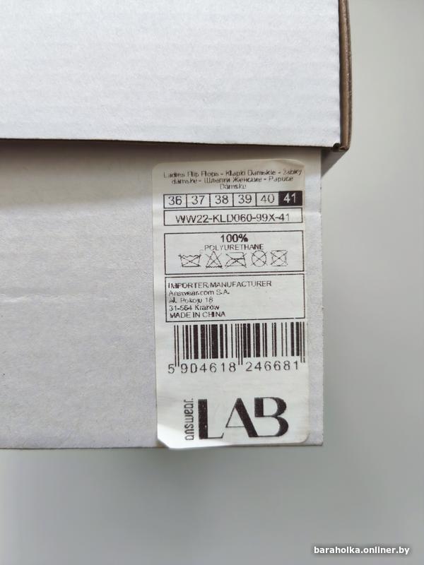 Шлёпанцы известной польской фирмы Answer Lab, размер указан 41, по стельке 26.3 см. Маломерят, рекомендую на 39 размер. Экокожа. 100% полиуретан.