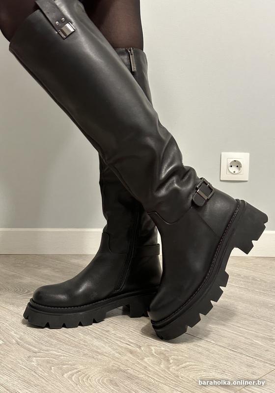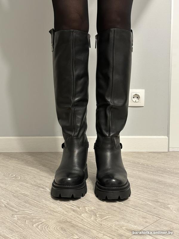 Сапоги женские зимние, размер 38, верх - натуральная кожа, подкладка - натуральный мех, б/у