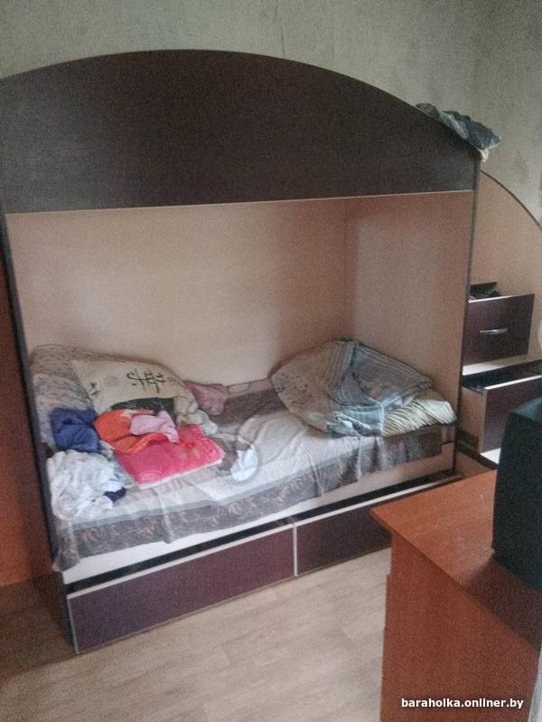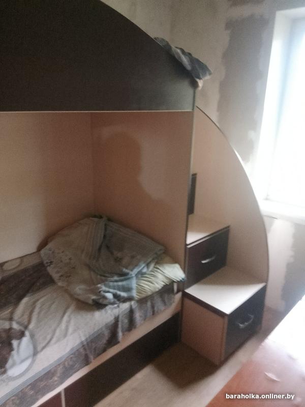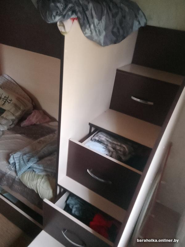 Продам двухъярусную кровать, с вместительными шуфлятками под ступеньками и под нидним матрасом. Состояние хорошее. Привезли с дачи назад в Минск, т.к. мало места в детской. Кровать уже разобрана.Можно посмотреть по ул. Семашко 4е Все вопросы по телефону +375336358339 Юрий