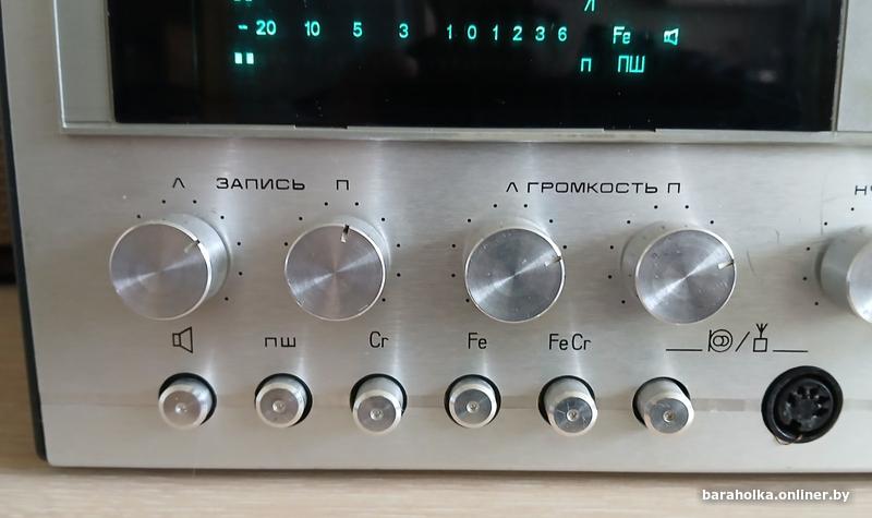 Требуется замена пассиков или роликов, т.к. кассету тянет с трудом. В остальном всё работает, включая блок индикации, шумоподавитель, счётчик. Можно использовать как усилитель.