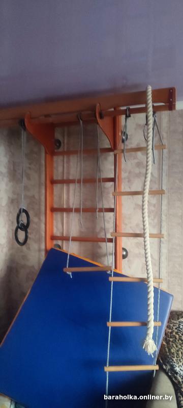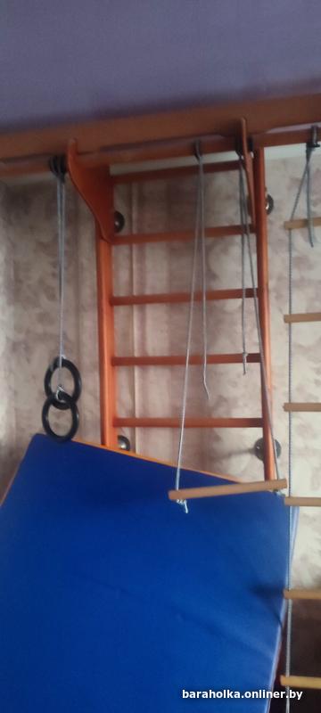 • Шведская стенка деревянная с турником, кольцами, канатом, лестницей и матом. В хорошем состоянии.Минск
