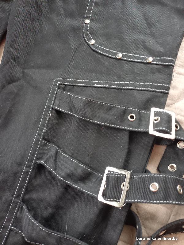 Брюки, штаны новые, р-р 44, украшены множеством застежек. ПОТ - 38 см, ПОБ - 46 см, длина - 101 см. Хлопок, не тянутся, книзу слегка расклешены. 80447845369
