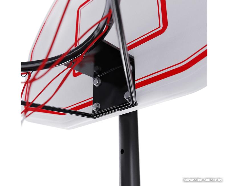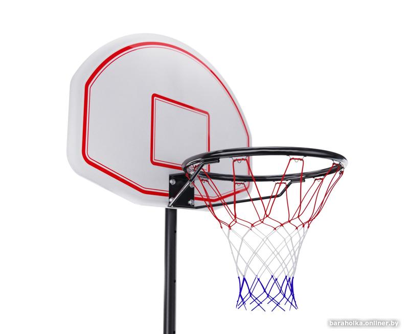 - Стойка белого цвета, имеет чёрную рамку корзины диаметром 16x1.0 мм, размер которой составляет 70x45 см. Размер кольца составляет 43 см.