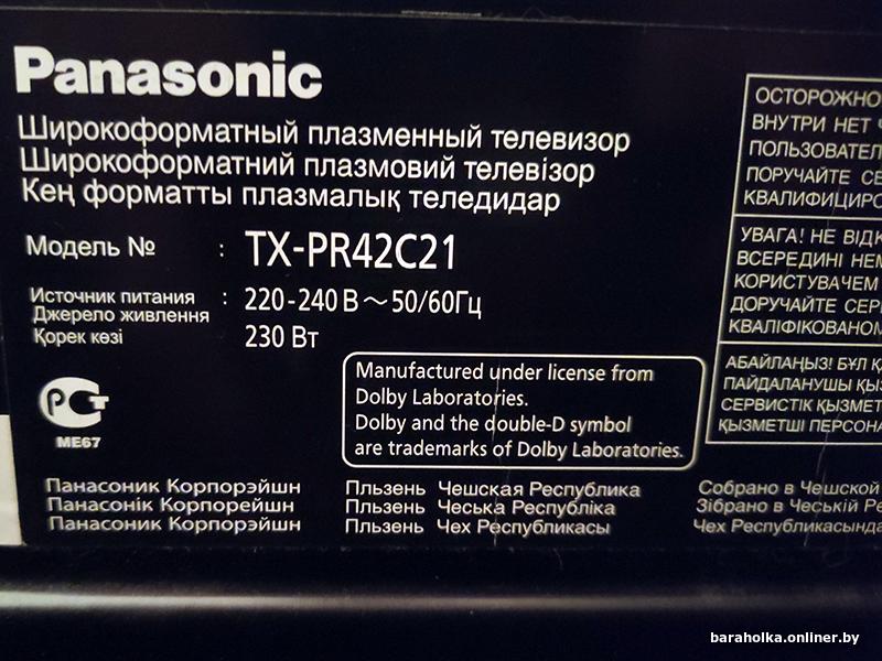 Плазменный телевизор Panasonic TX-PR42-C21 (б/у) в хорошем состоянии.