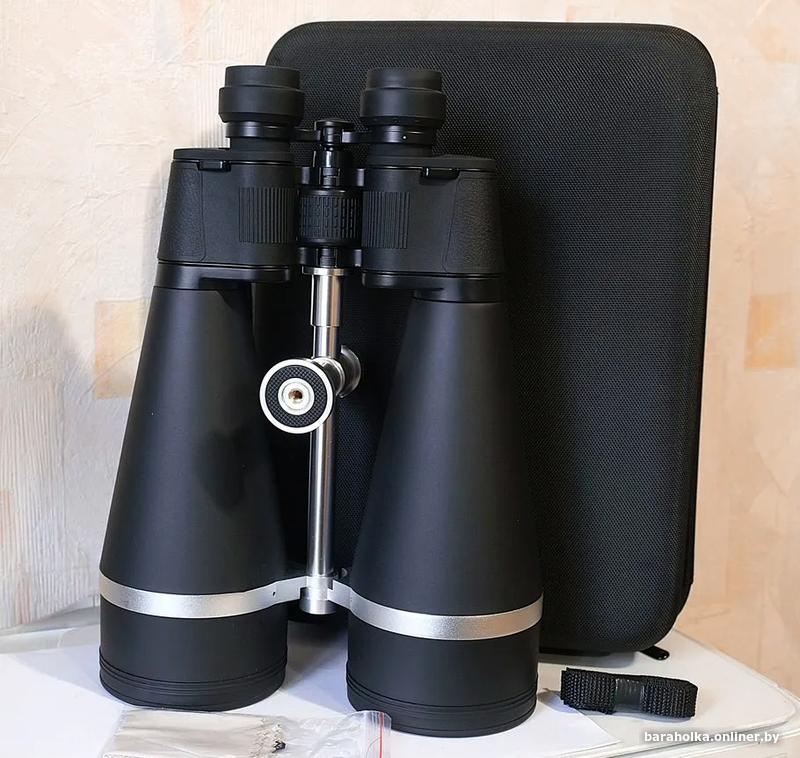 Комплект с футляром, ремнем, салфетками по уходу за оптикой, 2 крышки.