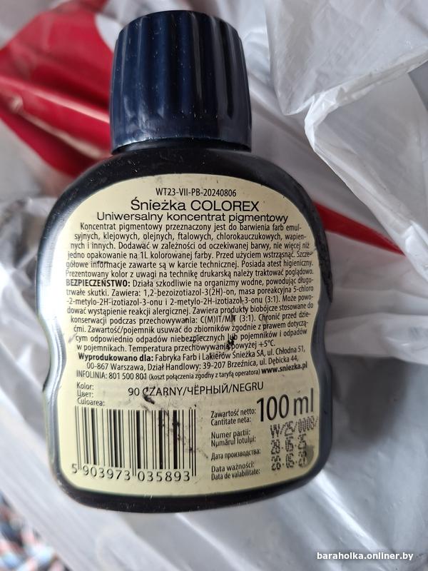 Колер SNIEZKA Colorex №90 черный 0,1 л, 5 руб. за штуку. В наличии 5л. Тел. 8(029)6667495, если не доступен, пишите в телегамм