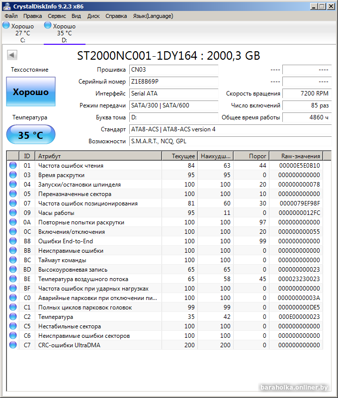 3.5", SATA 3.0 (6Gbps), 7200 об/мин, буфер 64 МБ, линейная скорость 180/180 МБ/с