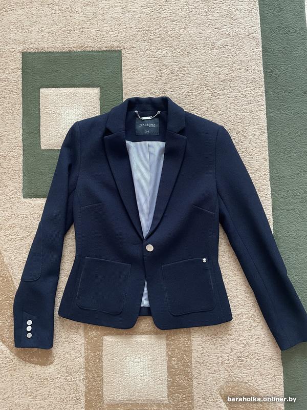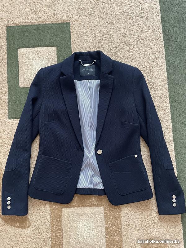 Приталенный женский пиджак Top Secret , выполнен из плотной ткани в рубчик, темно-синего цвета. Размер 42. Детали: воротник с лацканами, застежка на пуговицу, (качественная металлическая серебристая фурнитура), два кармана , подкладка светлая в темно-синюю полоску, подплечники из тонкого поролона.
