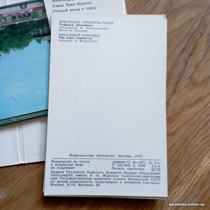 1. Набор фото открыток Брест: 15 открыток, год выпуска - 1973